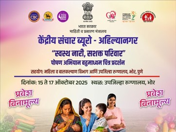 केंद्रीय संचार ब्युरो, भारत सरकार तर्फे राष्ट्रीय पोषण माह 2025 अंतर्गत बहुमाध्यम माहिती व चित्र प्रदर्शनाचे आयोजन करण्यात आले आहे. दिनांक 15 ते 17 ऑक्टोबर 2025 दरम्यान पुणे जिल्ह्यातील भोर येथे उपजिल्हा रुग्णालयात हे प्रदर्शन मांडण्यात येणार आहे.