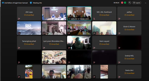 इस वर्चुअल संवाद में ग्राम पंचायत प्रतिनिधियों, ग्राम जल एवं स्वच्छता समिति के सदस्यों, सामुदायिक प्रतिभागियों, महिला स्वयं सहायता समूहों और अग्रिम पंक्ति के कार्यकर्ताओं के साथ-साथ जिला कलेक्टर/उपायुक्त, जिला पंचायतों के सीईओ, डीडब्ल्यूएसएम अधिकारी और राज्यों और केंद्र शासित प्रदेशों के वरिष्ठ अधिकारी एक साथ आए ।