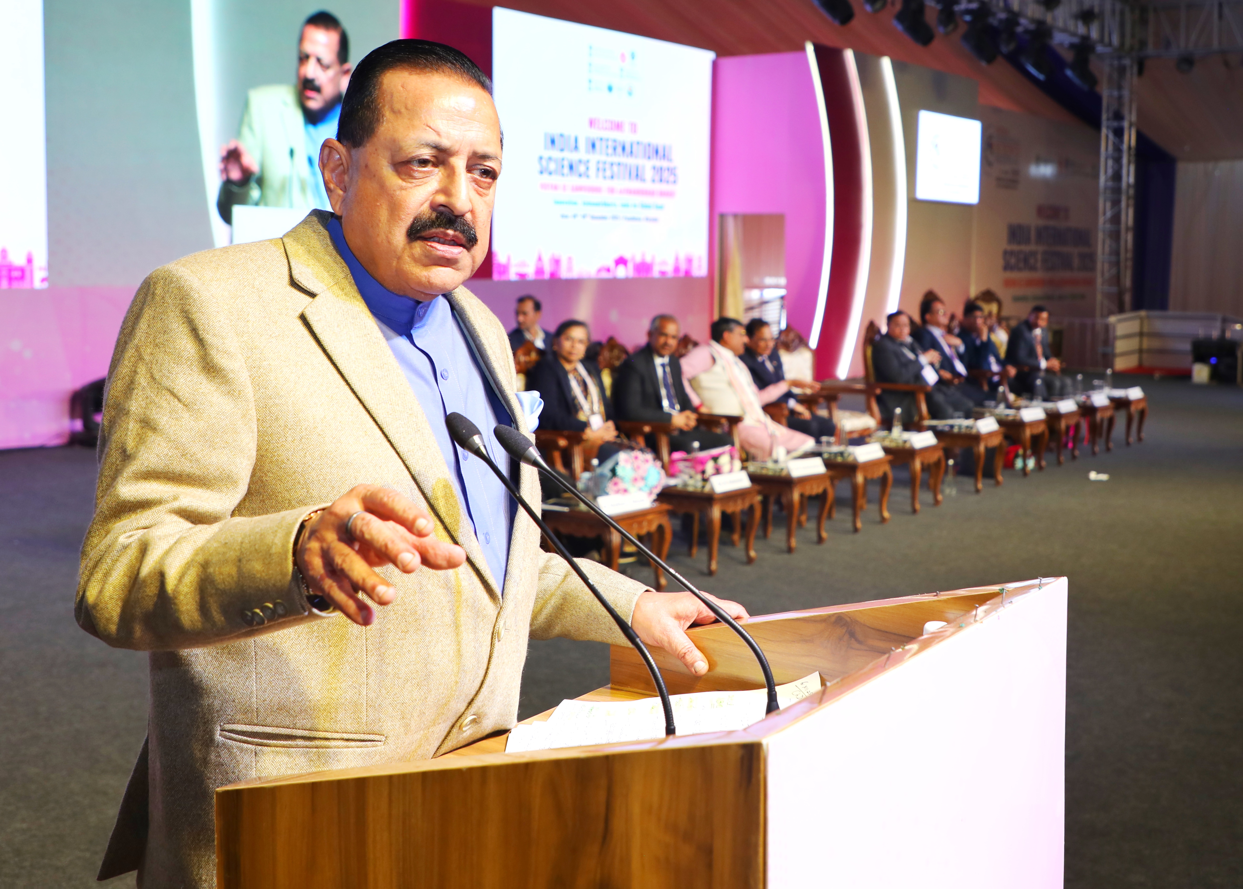 उद्घाटन सत्र को संबोधित करते हुए, डॉ. जितेंद्र सिंह ने कहा कि भारतीय अंतर्राष्ट्रीय विज्ञान महोत्सव को एक सामान्य अकादमिक सभा के रूप में नहीं, बल्कि एक खुले, जन-केंद्रित मंच के रूप में स्वीकार किया गया है जो विज्ञान को लोगों के समीप लाता है। उन्होंने कहा कि यह महोत्सव वैज्ञानिकों एवं वैज्ञानिक अनुसंधान के लक्षित लाभार्थियों के बीच वार्तालाप को प्रोत्साहित करता है, जो विज्ञान मंत्रालयों एवं विभागों के बीच अधिक समन्वय एवं एकता पर सरकार के दृष्टिकोण को दर्शाता है।