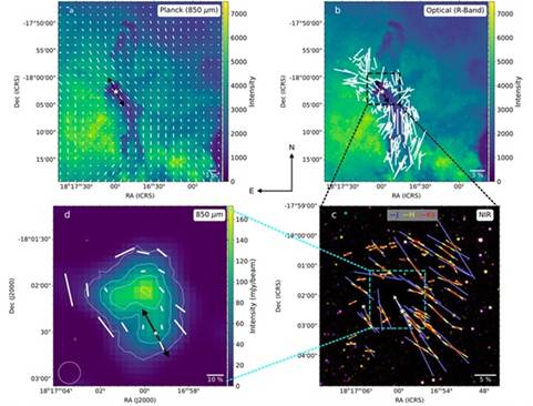 सात सौ प्रकाश वर्ष दूर, तारों की उत्पत्ति करने वाले आणविक बादलों का अध्ययन कर रहे खगोलविदों को नई जानकारी मिली है कि चुंबकीय क्षेत्र तारों की उत्पत्ति कैसे निर्देशित करते हैं।