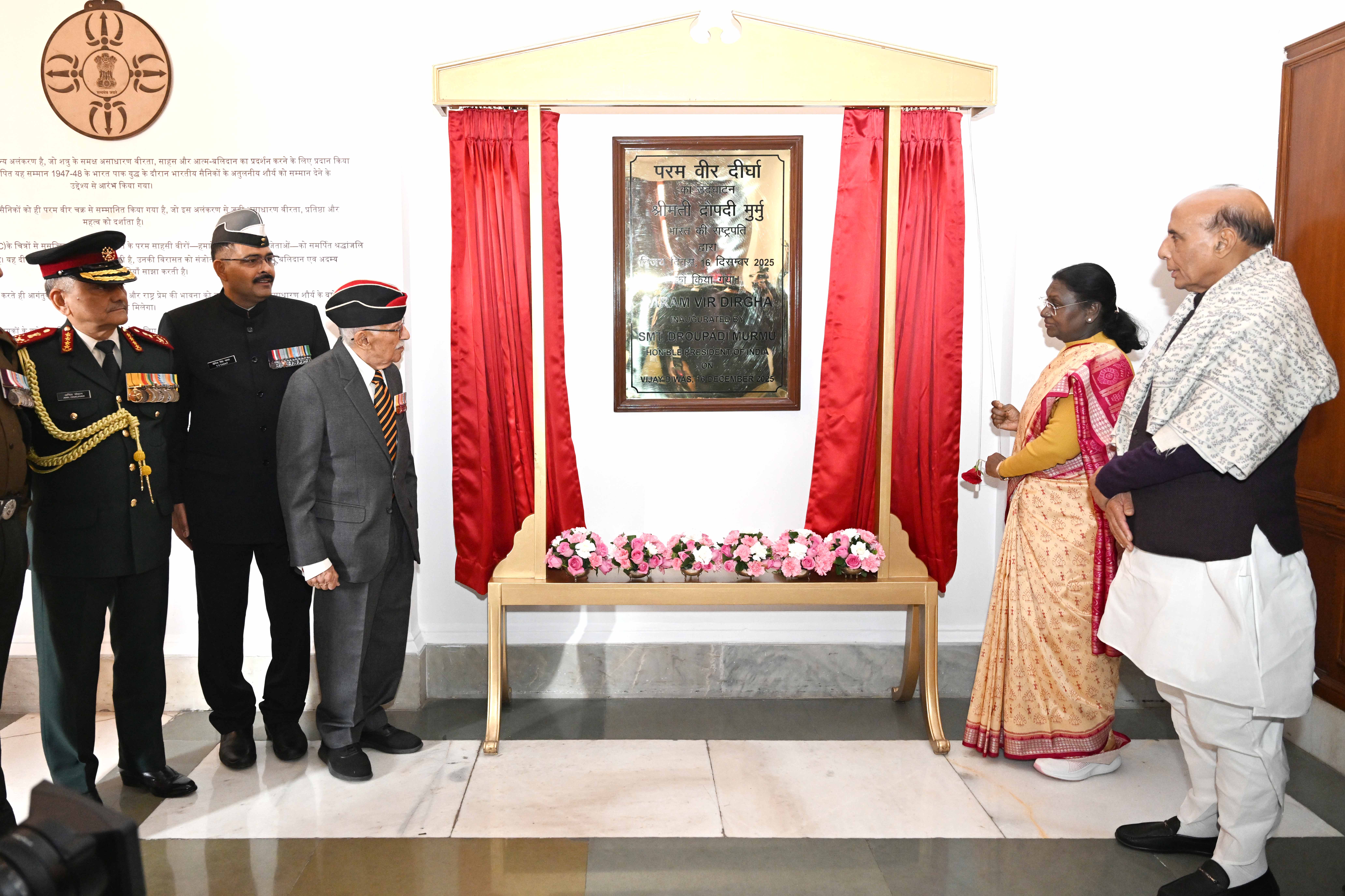 राष्ट्रपति श्रीमती द्रौपदी मुर्मु ने आज (16 दिसंबर, 2025) विजय दिवस के अवसर पर राष्ट्रपति भवन में परमवीर दीर्घा का उद्घाटन किया।