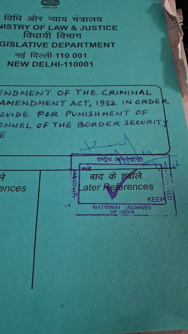 As part of the ongoing Special Campaign 5.0, on 30th and 31st October, 2025 officials from the National Archives of India (NAI) visited the record room of the Legislative Department, Ministry of Law and Justice, and carried out appraisal and stamping of 243 files that were beyond 25 years old for transfer to NAI. The campaign aims to ensure proper documentation, systematic appraisal, and timely preservation of records in accordance with archival standards. This initiative underscores the department’s commitment to maintaining transparency, accountability, and efficient management of official records, while promoting awareness among staff about proper documentation and archival procedures.