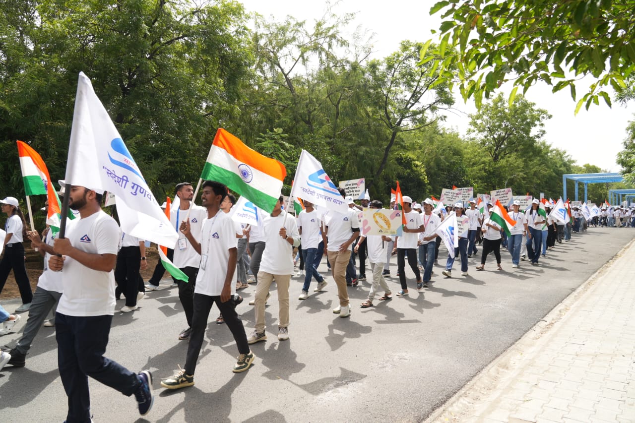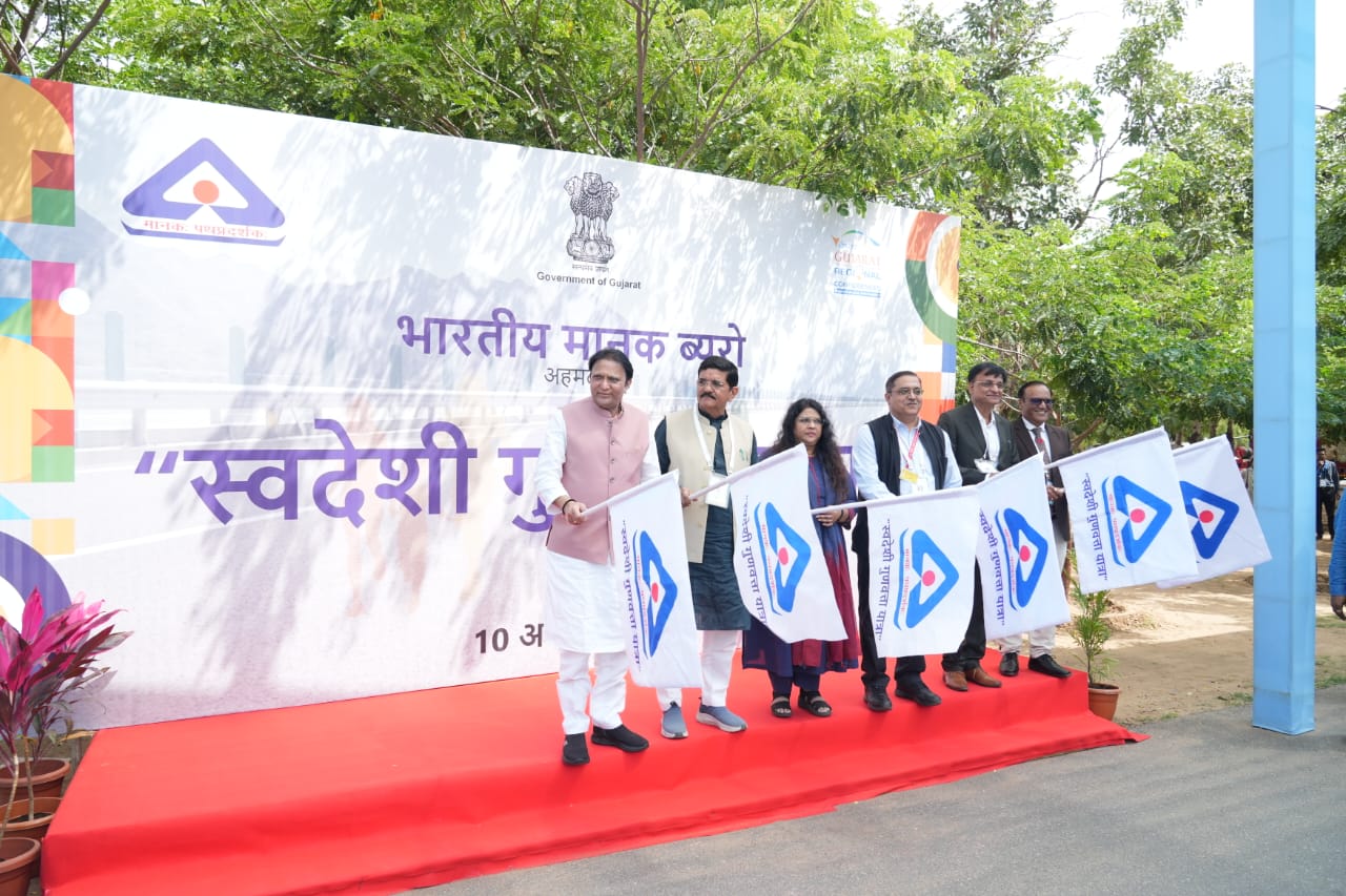 On October 10th, the Vibrant Gujarat Regional Conference for the North Gujarat region witnessed a unique initiative – Swadeshi Gunvatta Yatra organized by BIS Student Chapters. Over 1000 students from various academic institutions participated in this event, promoting the importance of Swadeshi products and quality.