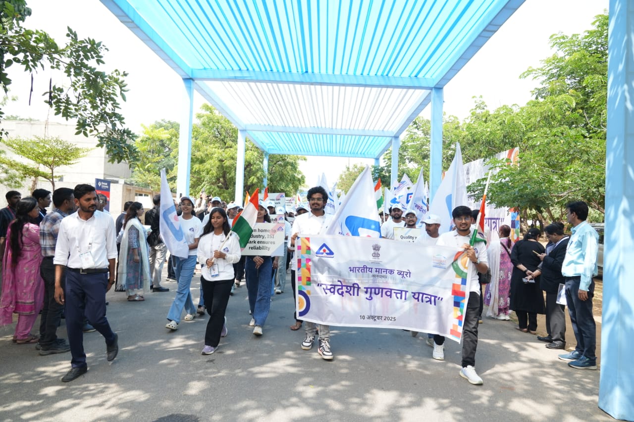Gujarat Technological University (GTU) witnessed a grand celebration of Manak Mahotsav on 13 October 2025, organized jointly by GTU and BIS Ahmedabad for BIS Student Chapters from various MOU institutions. The event featured impressive performances by students, showcasing their talent and creativity. The celebration was followed by a vibrant Swadeshi Gunvatta Yatra, where students promoted quality and self-reliance through Swadeshi products.