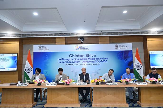 A Chintan Shivir on “Strengthening India’s Medical Devices Export Ecosystem” was organized by the Department of Commerce in collaboration with the Department of Pharmaceuticals and the Export Promotion Council for Medical Devices (EPCMD) at Vanijya Bhawan, New Delhi today. The event brought together policymakers, regulators, industry leaders, exporters and sector experts to deliberate on strategies for strengthening India’s global competitiveness in the MedTech sector.
