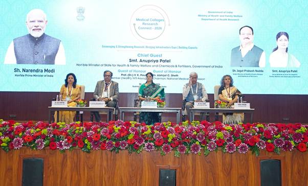 The Department of Health Research (DHR) today inaugurated the Medical Colleges Research Connect 2026 at the Sushma Swaraj Bhawan, Chanakyapuri, New Delhi. The two-day national conference to be held on 26TH – 27TH Feb 2026 serves as a platform to bring together over 100 medical colleges from all over India where Medical Colleges Research Units (MRUs) have been established under Central Sector Umbrella Scheme for establishing infrastructure for promotion of health research in India.
