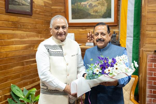 Before concluding his visit to Mizoram, Union Minister Dr. Jitendra Singh called on Mizoram Governor General (Retd.) V K Singh at Raj Bhavan, where the two leaders discussed a range of developmental and social initiatives aimed at furthering peace and prosperity in the North-Eastern region.