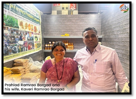 51-year-old Prahlad Ramrao Borgad and his wife Kaveri from Maharashtra’s Hingoli district, welcome visitors with neatly packed organic pulses, turmeric, ginger, pickles and other spices. A lifelong farmer, Borgad adopted organic farming in 2012 and formally launched ‘Surya Farmers’ in 2015 with support from his local Self-Help Group and the Micro, Small & Medium Enterprises (MSME) department.