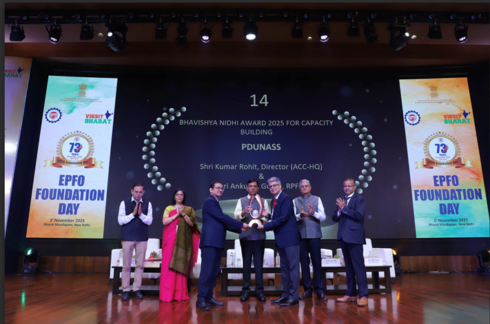 On this occasion, the Pandit Deendayal Upadhyaya National Academy of Social Security (PDUNASS) EPFO’s training and capacity-building institution was honoured with two Bhavishya Nidhi Awards 2025 for: