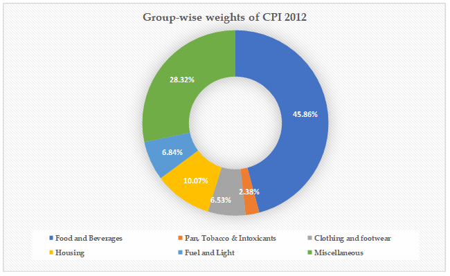 Ans: The weight of education services in CPI 2024 is 3.3%. Under COICOP 2018, books and stationery are classified separately from education services. When education services are combined with books and stationery, the effective “Education” share in CPI 2024 is 4.0%, compared with 4.46% in CPI 2012.