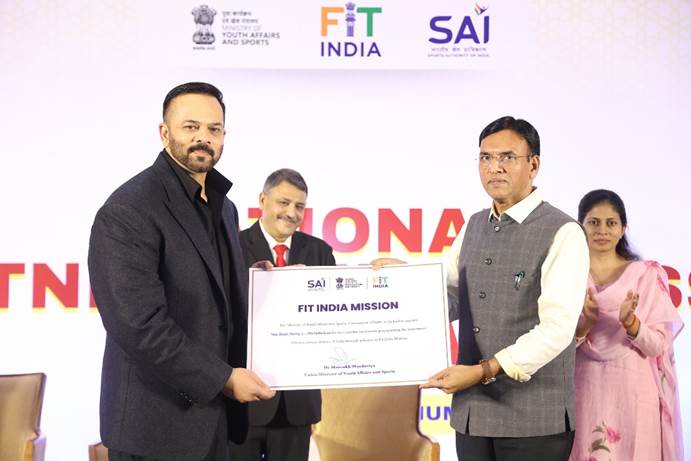 The Union Minister for Youth Affairs & Sports and Labour & Employment, Dr. Mansukh Mandaviya, felicitated the newly appointed Fit India Icons, Bollywood Producer Rohit Shetty, World Cup-winning cricketer Harbhajan Singh and Olympic medallist Saina Nehwal, at the National Fitness & Wellness Conclave 2025, held at The Trident in Mumbai today. The conclave celebrated India’s growing fitness and wellness movement under the Fit India Mission, marking a significant step towards building a Fit and Viksit Bharat.