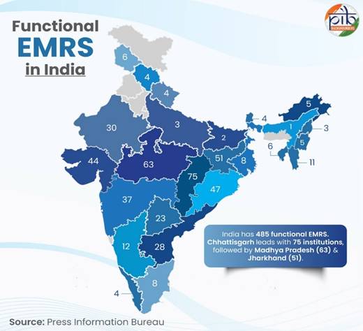 There are 485 functional EMRS schools in the country with 1,38,336 students enrolled in 2024-25. Overall, a total of 722 schools is sanctioned and Rs. 68,418 lakhs released for the schools.