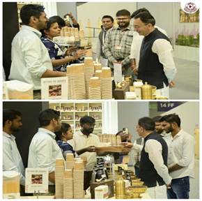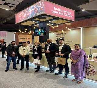 The coffee experience center stationed at Hall No. 14 First Floor, attracted many curious minds to explore and experience various Indian GI registered coffees. Many International delegates have come to savor the Sustainably Shade Grown, Selectively Hand Picked & Naturally Sun-dried Bharat GI Coffees.