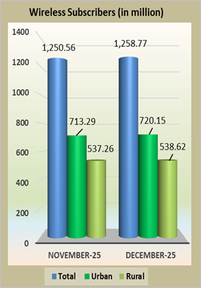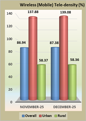 * Till the month of November 2025, M/s Bharti Airtel Limited did not include its M2M cellular subscriber base in its report on the wireless (mobile) subscriber base while the remaining operators were including their M2M cellular subscriber bases in their reports on the wireless (mobile) subscriber base. From the month of December 2025, M/s Bharti Airtel Limited has also started including its M2M cellular subscriber base in its report on the wireless (mobile) subscriber base. As a result, there has been a significant increase in the wireless (mobile) subscriber base in the month of December 2025.