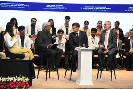 As part of the RUSH 2026 programme, a special 30-minute conversation titled “RUSH – Conversation on Artificial Intelligence” was held between H.E. Mr. Emmanuel Macron and two young Indian innovators, Ms. Priyanka Das Rajkakati and Mr. Manan Suri. The interaction, moderated by Ms. Clara Chappaz, French Ambassador for AI and Digital, highlighted the importance of youth-led innovation, cross-border collaboration, and the transformative potential of Artificial Intelligence in shaping inclusive and sustainable global futures.