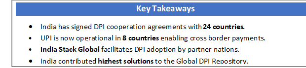 To facilitate structured cooperation, India Stack Global was established as a dedicated platform to showcase India’s DPI solutions and support adoption by partner countries. The portal provides access to key digital platforms and technical resources. It serves as a bridge between India’s experience and the requirements of friendly nations. Through this initiative, digital public goods are presented as adaptable building blocks rather than fixed templates.