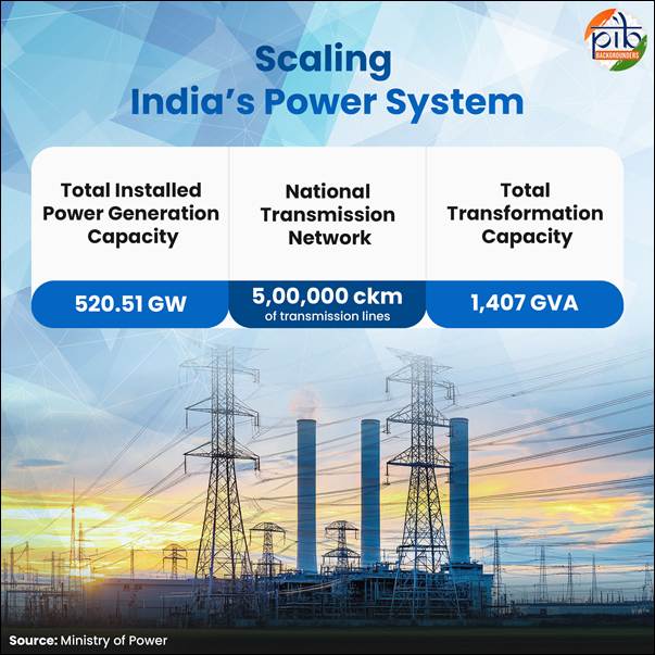 India’s national transmission network, the world’s largest synchronous national grid, has crossed a major milestone, exceeding 5 lakh circuit kilometres (ckm) of transmission lines and reaching a total transformation capacity of 1,407 gigavolt amperes (GVA). By reinforcing both generation and networks simultaneously, India has laid the foundation for a power sector that can support growth not just today, but well into the future.