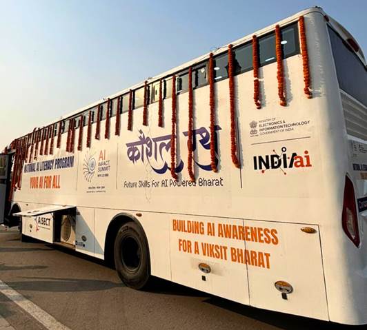 IndiaAI, Ministry of Electronics & Information Technology (MeitY) in collaboration with All India Society for Electronics and Computer Technology (AISECT), today flagged off Kaushal Rath, a mobile Artificial Intelligence (AI) awareness initiative under the National AI Literacy programme “Yuva AI for All.” The initiative aims to expand access to foundational AI education and bridge the digital divide by reaching students, youth, educators, and learners in semi-urban and underserved regions.