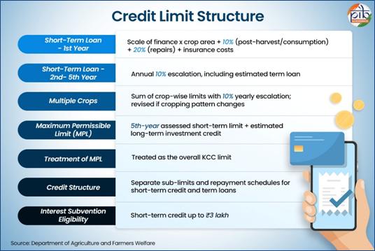 In 2025–26, the Government of India enhanced the Kisan Credit Card (KCC) lending limit, which includes: