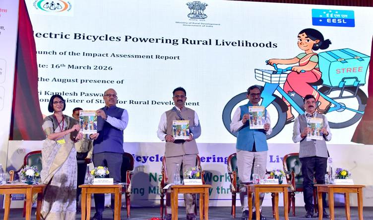 The Union Ministry of Rural Development (MoRD), Government of India, in collaboration with Convergence Energy Services Limited (CESL), a wholly owned subsidiary of Energy Efficiency Services Limited (EESL), organised a National Workshop on Promoting Micromobility through Electric Bicycles today. The workshop focused on the theme “Electric Bicycles Powering Rural Livelihoods” and examined the role of electric micromobility solutions in enhancing rural mobility, strengthening livelihoods and supporting sustainable development.