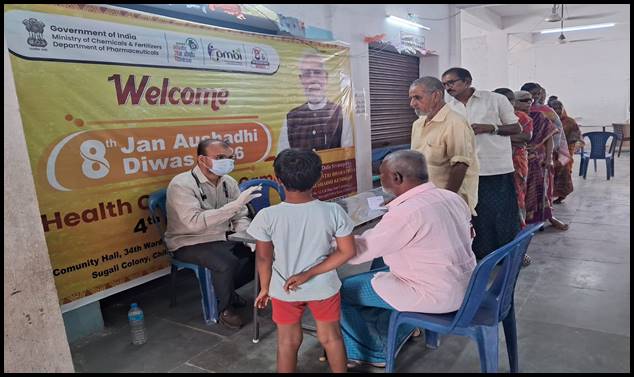 On the fourth day of Janaushadhi Saptah 2026, health check-up camps were organised across various states and union territories, by the Pharmaceuticals & Medical Devices Bureau of India (PMBI), Department of Pharmaceuticals, Ministry of Chemicals and Fertilizers, as part of the nationwide outreach initiative being conducted from 1st to 5th March 2026 in the run-up to the 8th Janaushadhi Diwas on 7th March. Even as the country celebrated the festival of Holi,  these health camps witnessed enthusiastic participation from citizens. Free medical consultations, on-site diagnostic services such as blood pressure, blood sugar and thyroid testing, pediatric care, and consultations for chronic illnesses were provided. Distribution of Janaushadhi medicines and Suvidha sanitary pads was also carried out, along with awareness sessions highlighting the benefits of affordable and quality generic medicines.