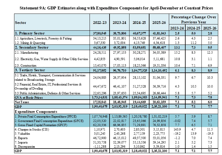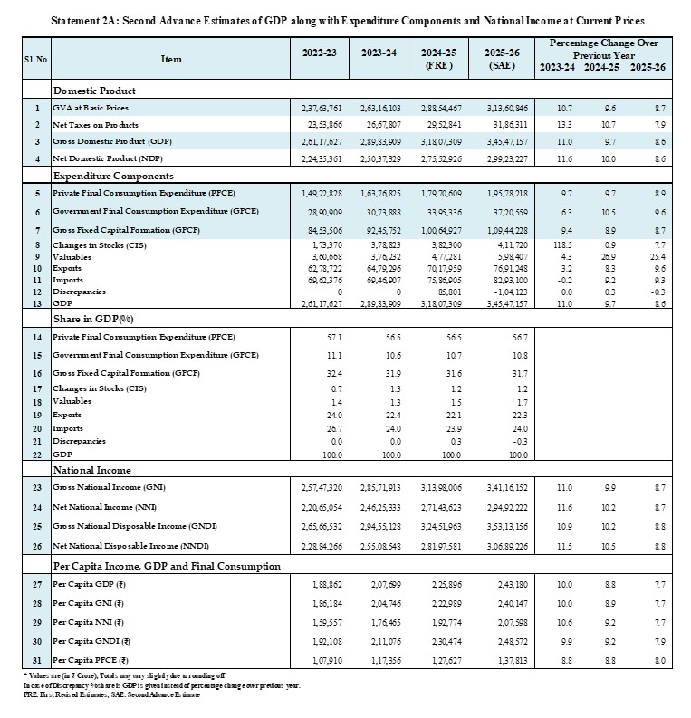 Second Advance Estimates of Annual GDP for FY 2025–26.