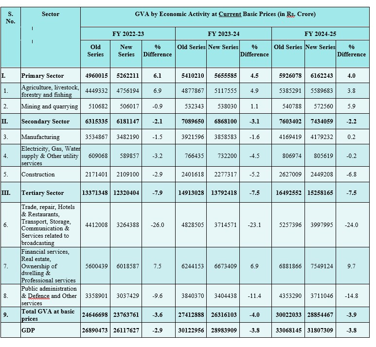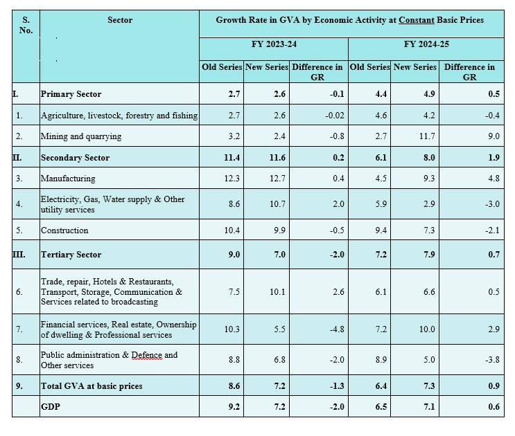 More details of the New Series Estimates for FY 2022-23, 2023-24 and 2024-25 are available in Statements 1.1B to 9B provided in the pdf format of the Press Note (link given at the end)  and also can be accessed from the website of the Ministry of Statistics and PI (https://www.mospi.gov.in/themes/product/6-gross-domestic-product#latest-release).