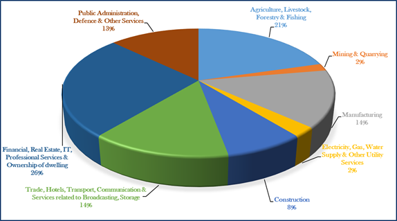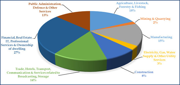 Tertiary Sector: Trade, Hotels, Transport, Communication and Services related to Broadcasting, Storage; Financial, Real Estate, IT, & Professional Services, Ownership of Dwelling and Public Administration, Defence & Other Services]