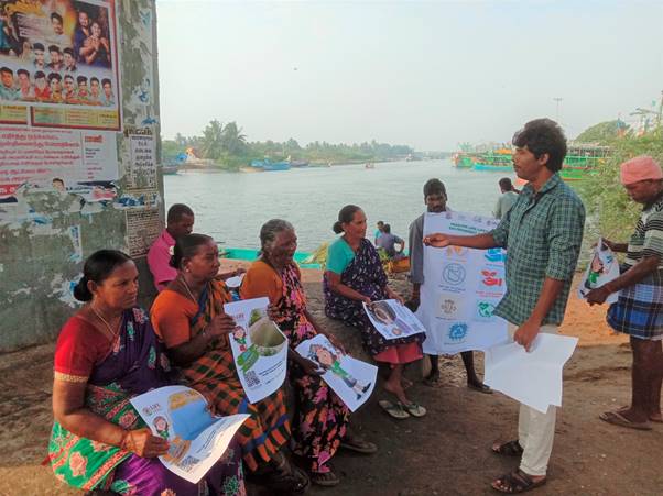 The NCSCM has launched yet another effort to promote Mission LiFE themes in the fishing community of Old Town in the District of Cuddalore. Cuddalore District is located in the southern Indian state of Tamil Nadu and is an important coastal district in the state. The district is one of the most productive fishing areas in Tamil Nadu, with a large fishing community. The district also has several tourist attractions for domestic tourists and people from all over India. The Cuddalore district has a coastal length of 58 kilometres and 49 fishing villages, with a total population of 47,000 marine fishermen. There are 23840 active fishermen among them, and almost 15000 fisherwomen are involved in fishing-related activities. There are 235 mechanised fishing boats and 2345 FRP boats, as well as 1906 non-motorised boats, operating in this district.