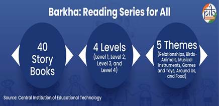 A pioneering effort in early inclusion, Barkha: A Reading Series for ‘All’, developed by the Department of School Education & Literacy, exemplifies Universal Design for Learning (UDL) through 40 multilingual story booklets[11] [12]available in both print and digital formats. Featuring tactile visuals, high-contrast illustrations, accessible scripts, and audio-video introductions in ISL and spoken language, Barkha fosters foundational literacy in diverse learners, including those with visual, cognitive, or motor challenges. The digital version, accessible via NCERT’s website and ePathshala, allows personalised, self-paced reading on any device, promoting privacy, autonomy, and joy in learning. By embedding sign language as a regular communication mode from the foundational stage, Barkha not only supports CwSN but also sensitises all children to inclusive practices, thus serving as a scalable model for developing accessible textbooks and learning materials across all educational stages.
