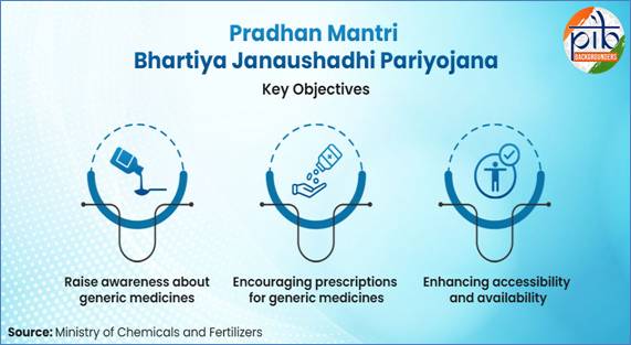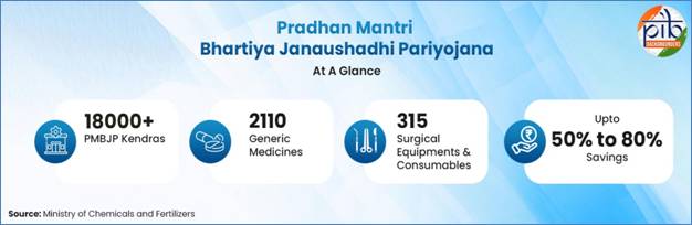 A significant initiative in this direction was the launch of the Pradhan Mantri Bhartiya Janaushadhi Pariyojana (PMBJP). The scheme seeks to provide quality-assured generic medicines at significantly lower prices through an expanding network of dedicated Jan Aushadhi Kendras (JAKs) across the country, thereby strengthening the affordability and access to generic pharmaceuticals.