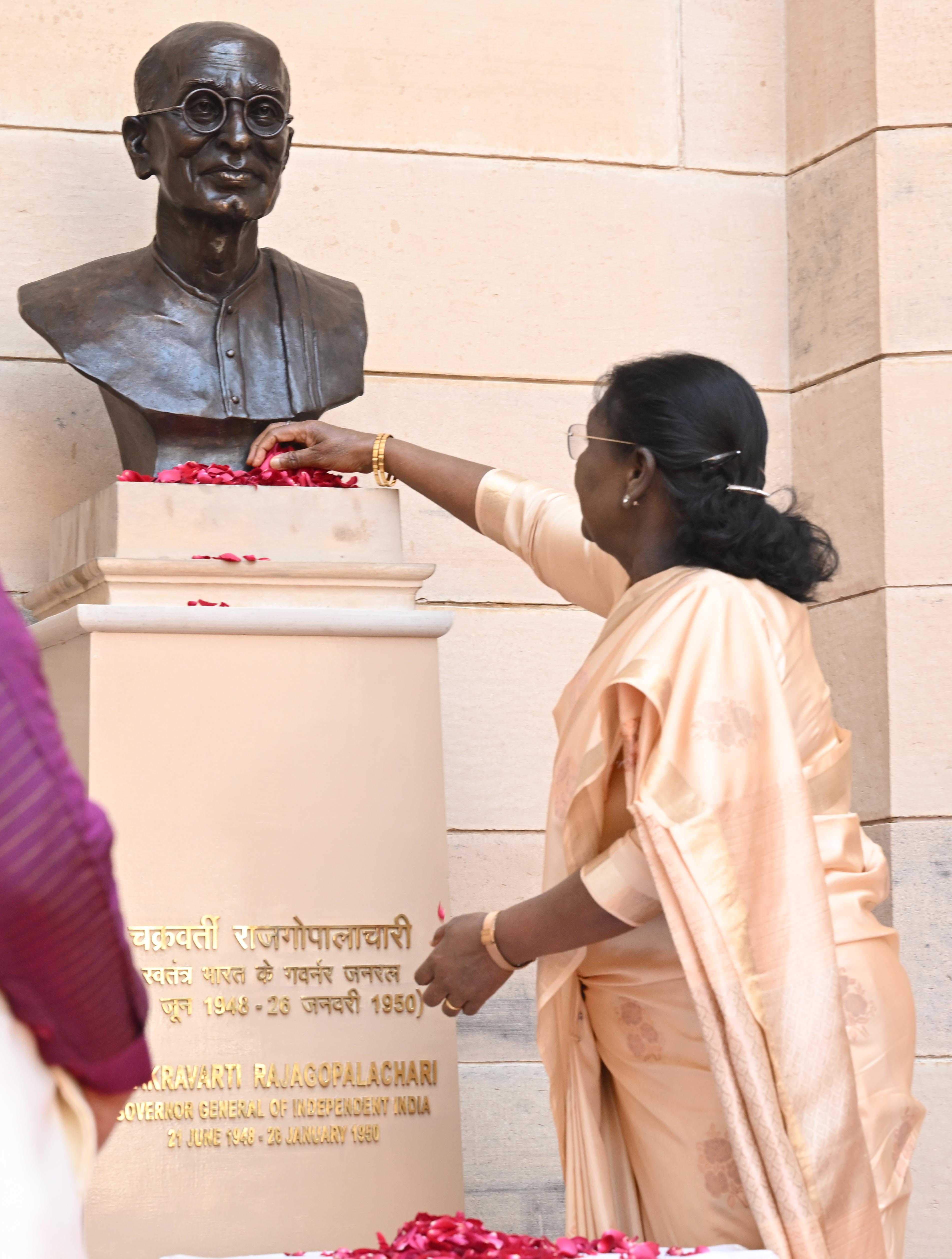 The President of India, Smt. Droupadi Murmu unveiled bust of Shri Chakravarti Rajagopalachari, the first and only Indian Governor General of independent India at Rashtrapati Bhavan today (February 23, 2026), in the presence of the Vice President of India. The bust of C. Rajagopalachari, at the Grand Open Staircase near Ashok Mandap opposite to the statue of Mahatma Gandhi, replaces the bust of Edwin Lutyens. This initiative is part of series of steps being taken towards shedding the vestiges of the colonial mindset and embracing, with pride, the richness of India’s culture, heritage, and timeless traditions.