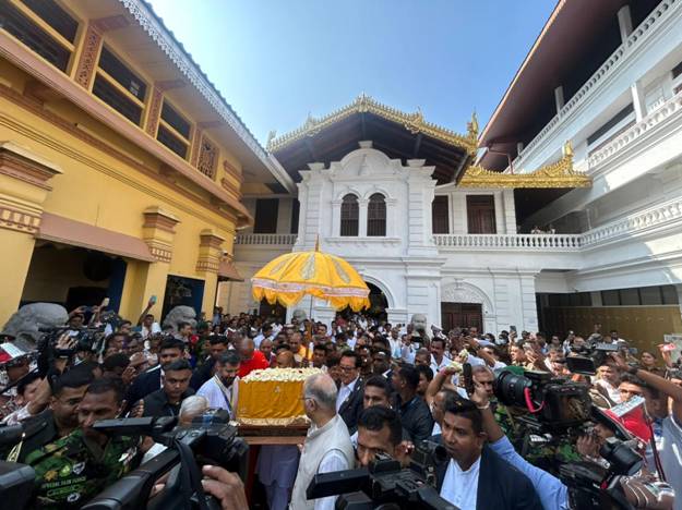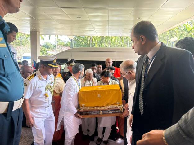 The Holy Relics, which were taken abroad for their first-ever international exposition, are being escorted back by a high level Indian delegation led by the Governor of Madhya Pradesh, Shri Mangubhai Patel, and the Deputy Chief Minister of Arunachal Pradesh, Shri Chowna Mein, along with senior Buddhist monks and officials. The ceremonial departure took place at Bandaranaike International Airport in the presence of Sri Lankan Ministers and the High Commissioner of India to Sri Lanka.