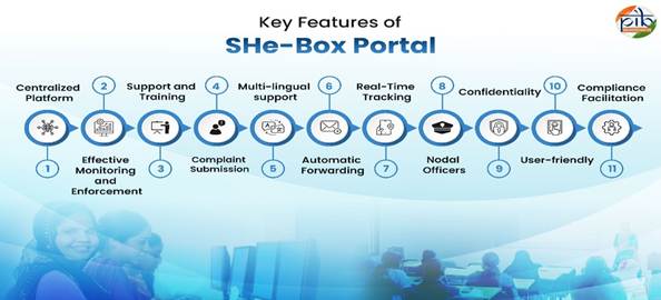 SHe-Box serves as a single-window, centralised digital platform. By creating a central repository — which was previously unavailable — the SHe-Box portal strengthens monitoring of the Act’s implementation. It helps track cases filed and disposed of nationwide. The platform promotes accountability, faster redressal, and long-term cultural change in workplaces. Ultimately, SHe-Box contributes to safer work environments and advances women’s empowerment.