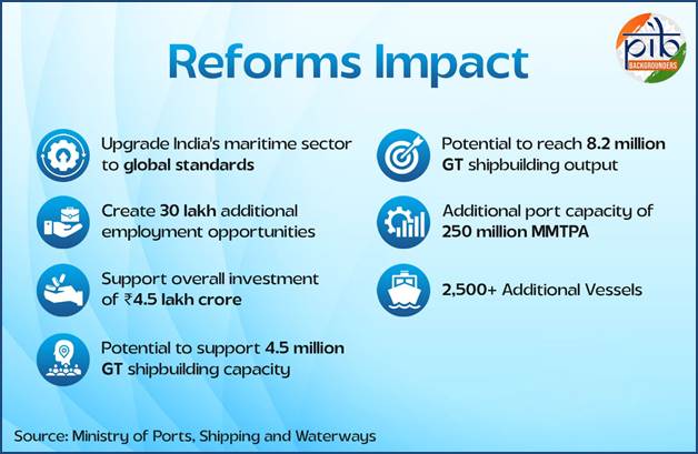Recent government announcements in September, 2025 for the shipbuilding sector focus on expanding domestic capacity, improving access to long-term financing, and creating a globally competitive ecosystem. These measures aim to generate large-scale employment, attract investment, and strengthen India’s strategic and economic resilience through modern infrastructure and policy reforms.