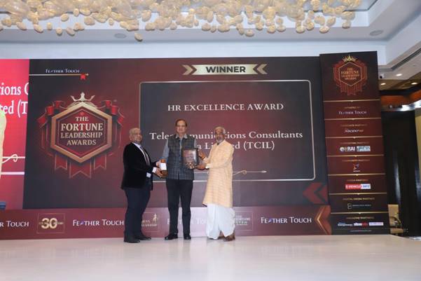 Telecommunications Consultants India Limited (TCIL), a Miniratna Schedule ‘A’ PSU under the Department of Telecommunications, has received the HR Excellence Award at the Fortune Leadership Awards 2025, held on October 11 at Radisson Blu Plaza, Delhi. The award honors TCIL’s exemplary HR practices, employee development, innovation, and inclusivity. The award was presented by Dr. Dinesh Upadhyay, Former Member, Ministry of AYUSH, and Shri M. S. Nethrapal, IRS, & accepted by Shri P. Suresh Babu, CGM (HR), in the presence of distinguished leaders from across sectors.