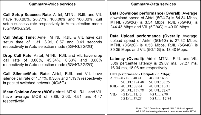 The tests were conducted using TRAI-calibrated equipment and standardised protocols in real-time environments. The detailed report is available at TRAI website www.trai.gov.in. For any clarification/information, Shri Brajendra Kumar, Advisor (Regional Office, Bengaluru) TRAI may be contacted on email: adv.bengaluru@trai.gov.in or at Tel. No. +91-80-22865004.