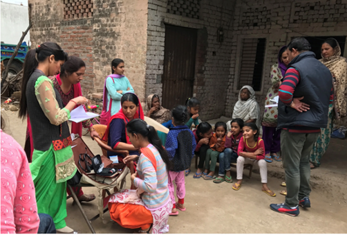 Integrated Ecosystem: Portable antenatal care kits and wireless fetal monitoring (Fetosense) used by frontline workers for household-level screenings (BP, hemoglobin, fetal heart rate) of pregnant women.