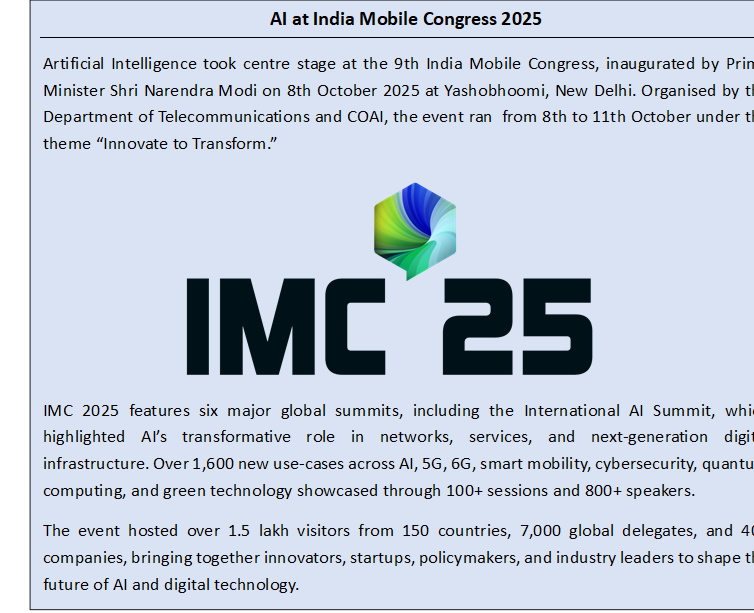 This framework provides structured training for government officials, helping them acquire essential AI skills and apply them in policymaking and governance. Designed in line with global benchmarks, it ensures that India’s public sector remains informed, agile, and prepared for the AI-driven future.