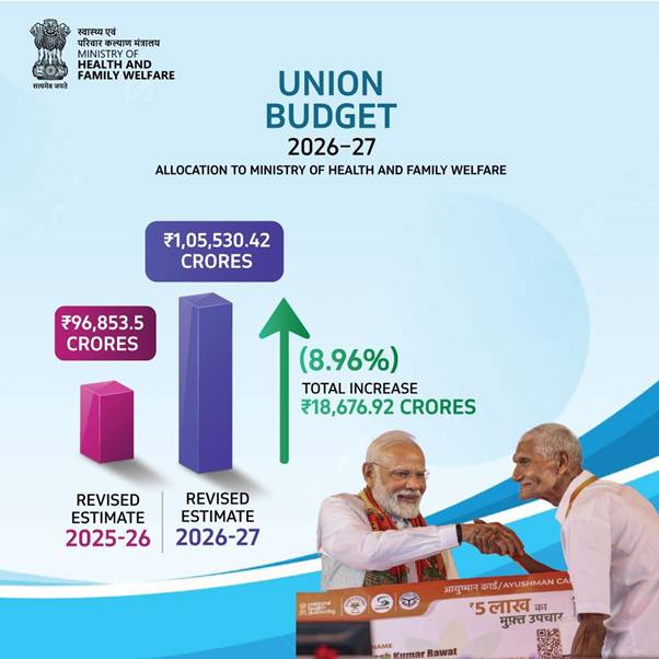 The Union Budget 2026–27 has accorded paramount importance to the health sector, with enhanced budgetary allocations and focused policy interventions for the Ministry of Health & Family Welfare (MoHFW), aimed at accelerating the comprehensive transformation of India’s healthcare ecosystem.