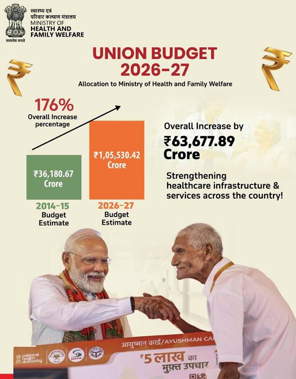 The Union Budget 2026–27 reaffirms the Government’s unwavering commitment to building a resilient, inclusive and future-ready healthcare system, led by the Ministry of Health & Family Welfare, ensuring affordable and quality healthcare for all citizens, in pursuit of the vision of Viksit Bharat@2047.