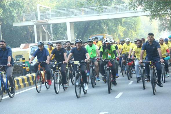 The event saw enthusiastic participation from people of all ages, along with World Para Athletics Championship (WPAC) medalists Praveen Kumar, Soman Rana and Sailesh Kumar, who joined to inspire the public towards an active lifestyle. Organised in collaboration with the Cycling Federation of India (CFI), Yogasana Bharat, and MY Bharat. The Delhi event was conducted in partnership with Raahgiri Foundation, Fitspire and Red FM. Alongside cycling, the event also had Zumba, Rope Skipping led by Dr. Shikha Gupta, and Yogasana along with a Game Zone.