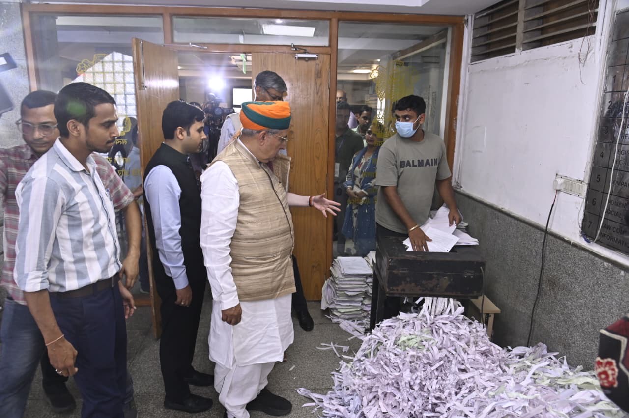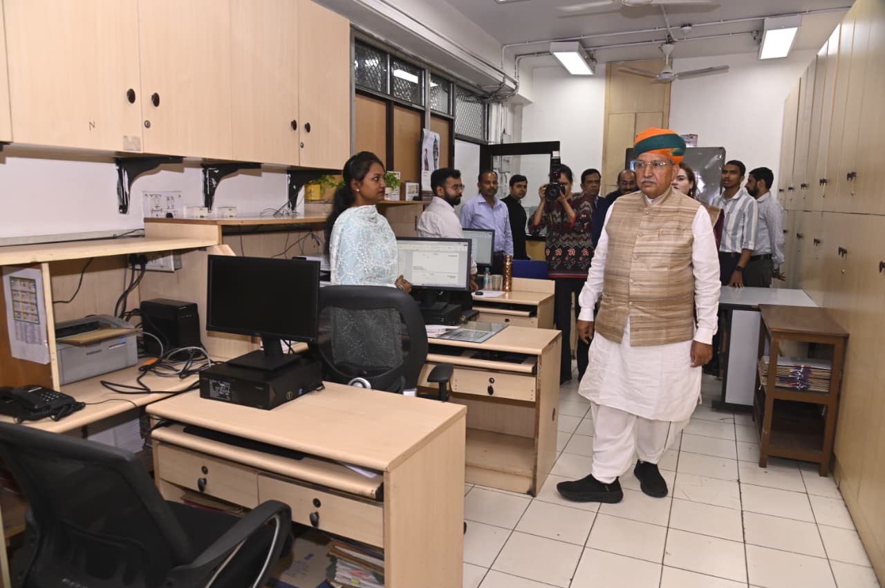 Shri Meghwal undertook an office round at the Main Secretariat, Shastri Bhawan, where he inspected the Department’s progress and initiatives in cleanliness, record management, e-waste disposal and workspace beautification. He was accompanied by the Law Secretary, along with senior officers of the Department.