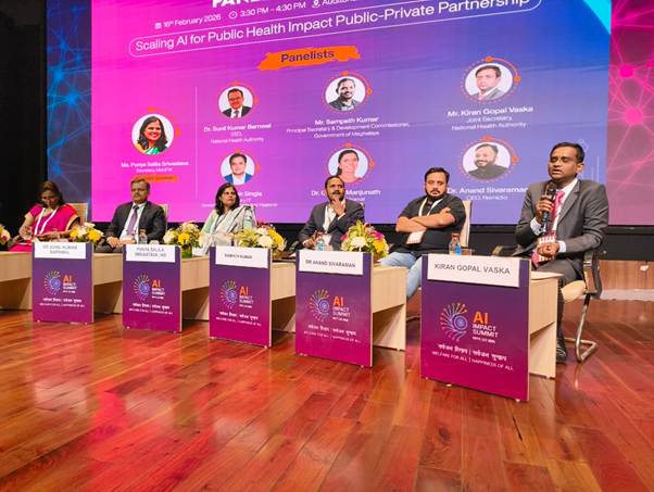Union Ministry of Health and Family Welfare today hosted a high-level panel discussion on the theme “Scaling AI for Public Health Impact: Public-Private Partnership” as part of the India AI Impact Summit 2026 at Bharat Mandapam.